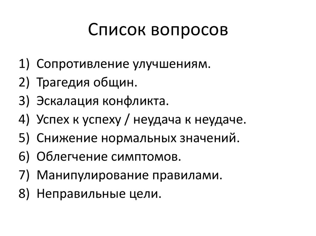 Системные ловушки и возможности. Сопротивление улучшениям. Трагедия общин. Эскалация конфликта. Неправильные цели