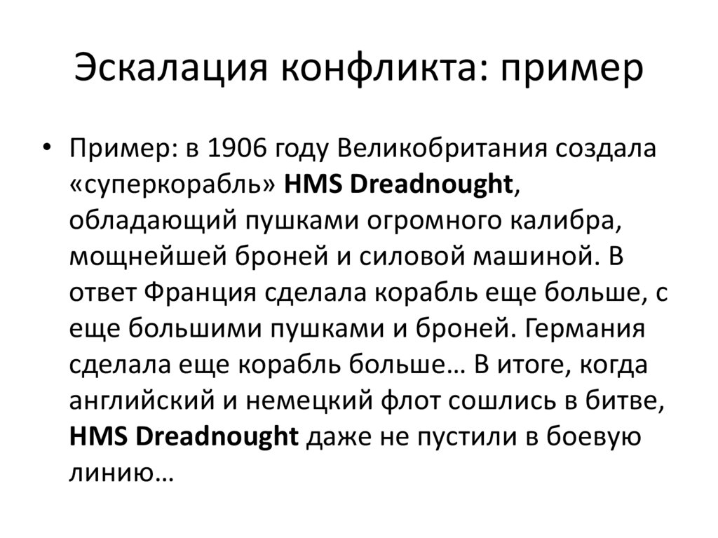 Эскалация конфликта: пример• Пример: в 1906 году Великобритания создала