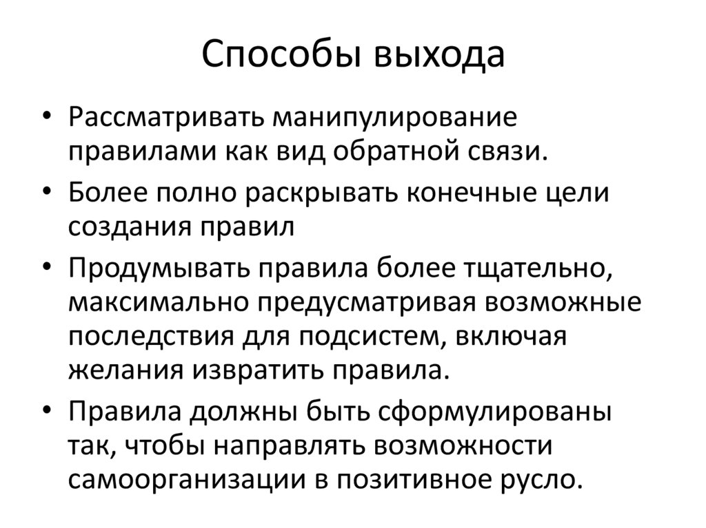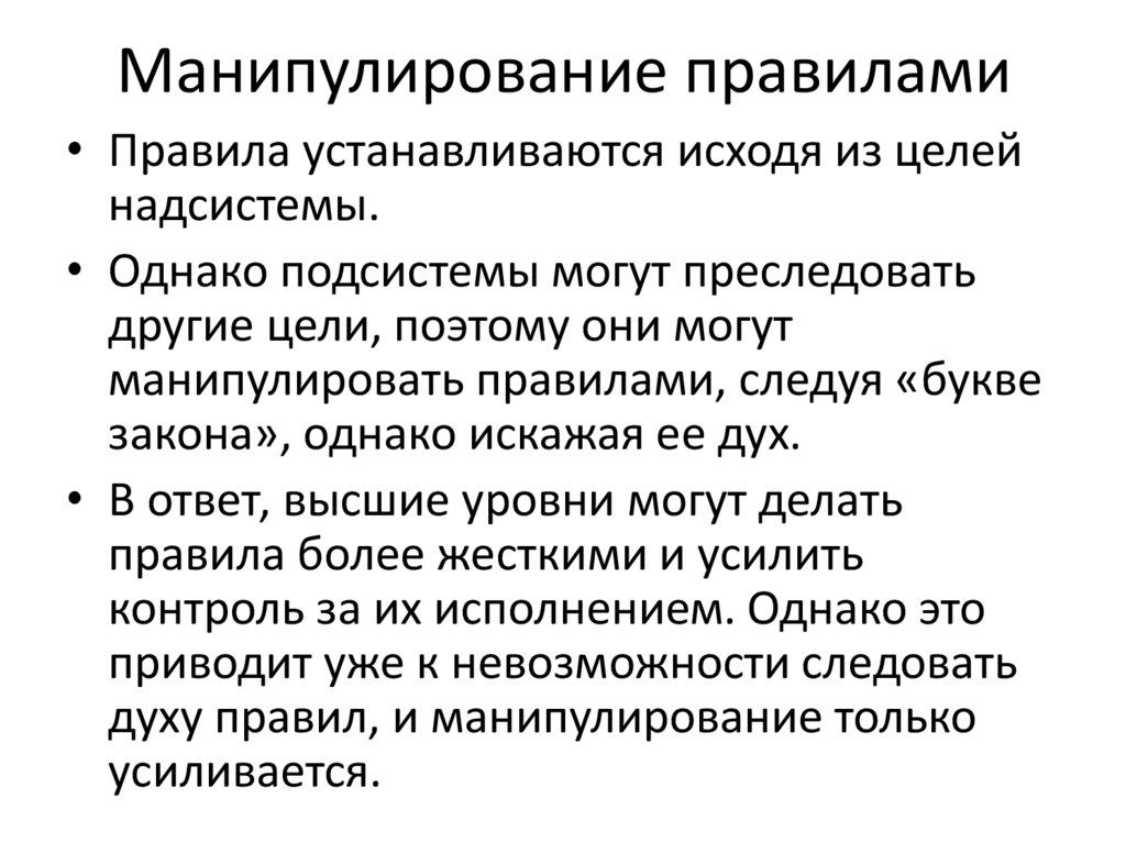 Манипулирование правилами• Правила устанавливаются исходя из целей