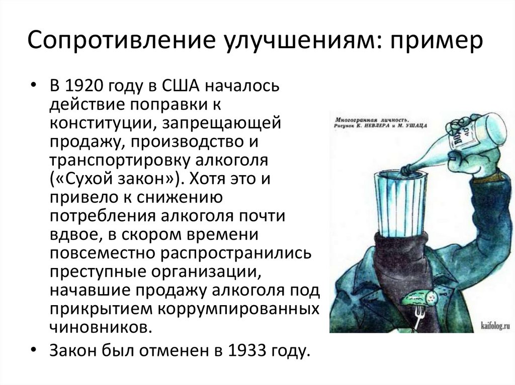 Сопротивление улучшениям: пример• В 1920 году в США началось