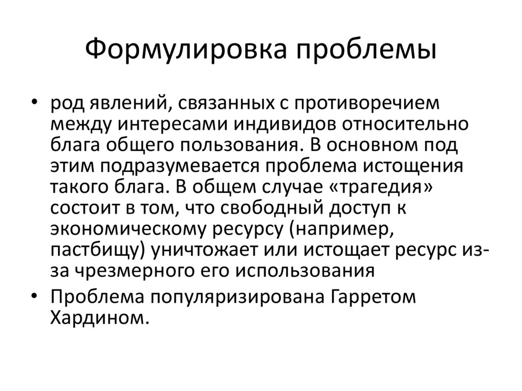пастбищу) уничтожает или истощает ресурс изза чрезмерного его использования