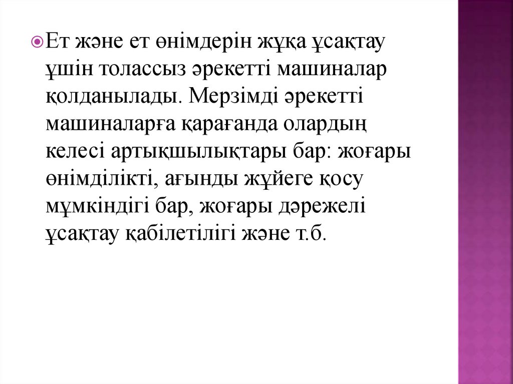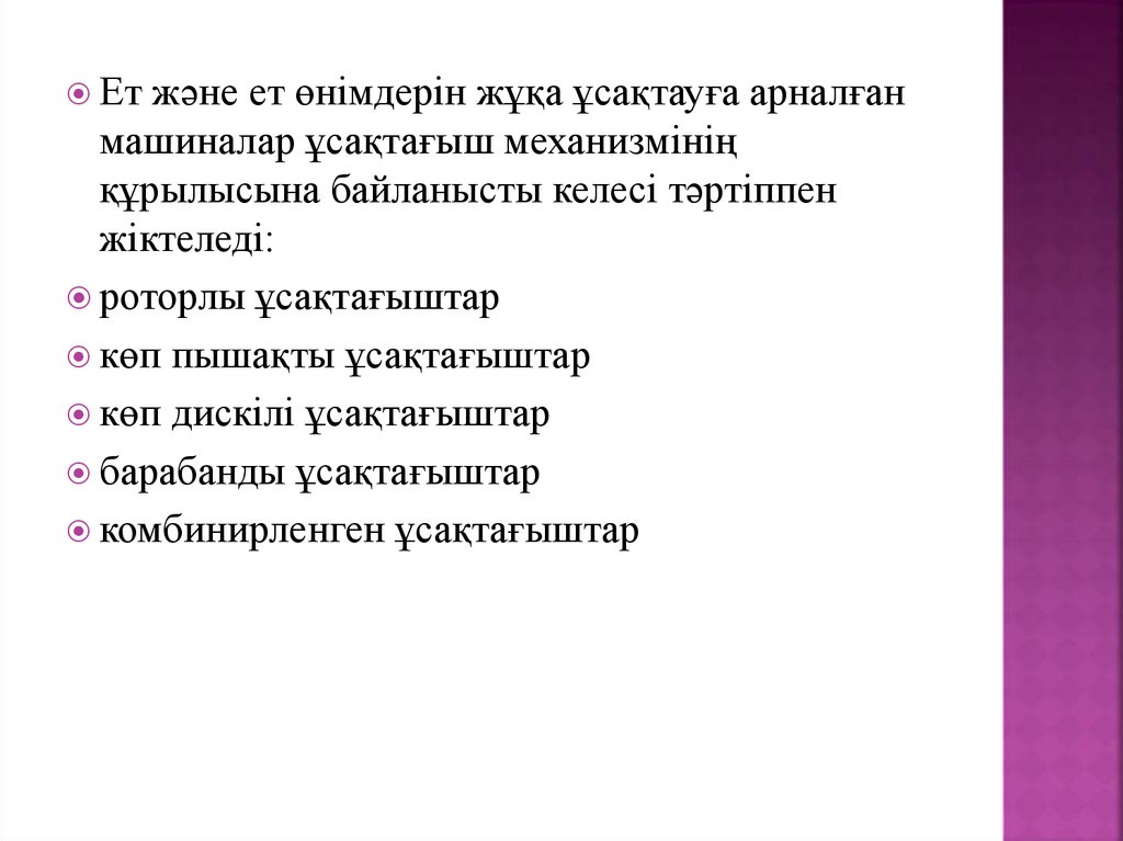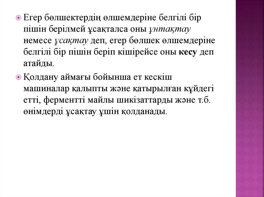 Етжәне ет өнiмдерiн жұқа ұсақтау