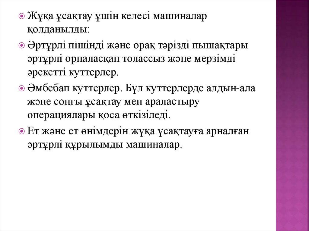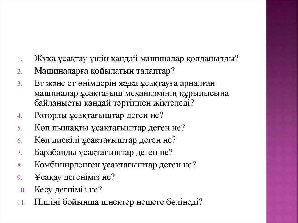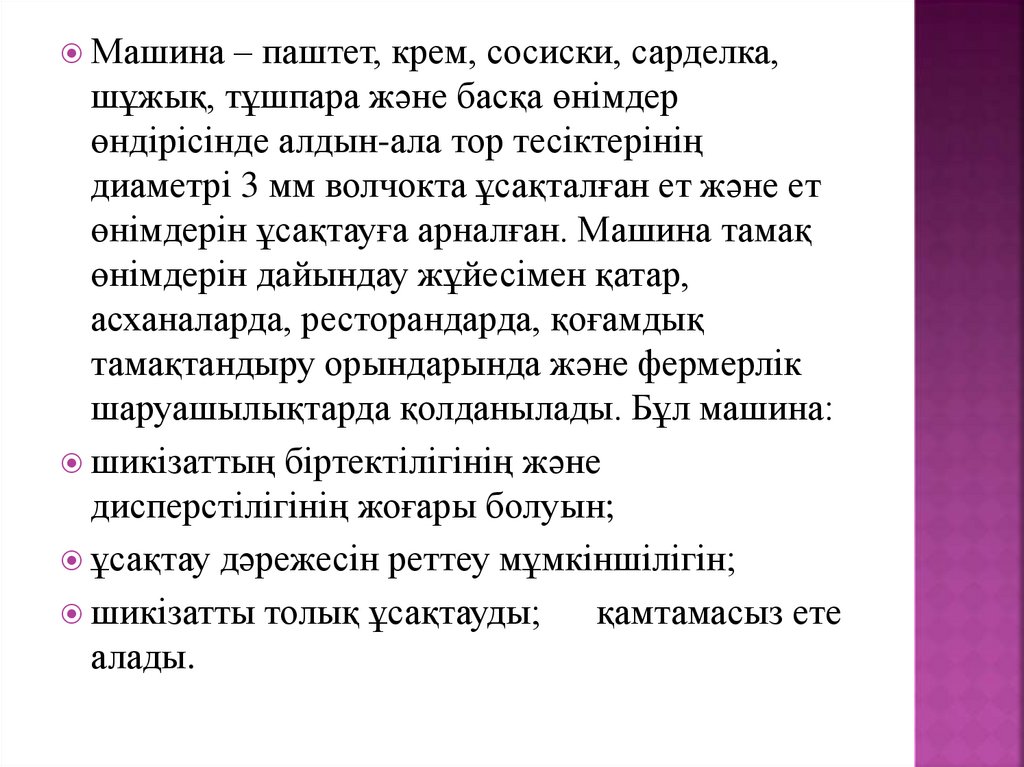 өнiмдерiн ұсақтауға арналған. Машина тамақ