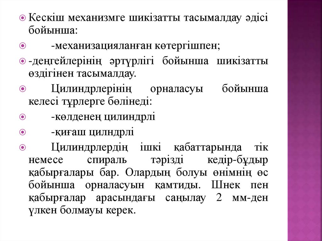 6, 4, 3, 2 мм болады. Кескiш механизмдегi