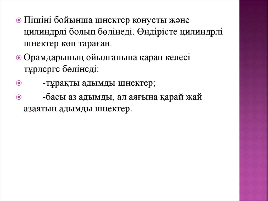 Пiшiнi бойынша шнектер нешеге бөлiнедi?