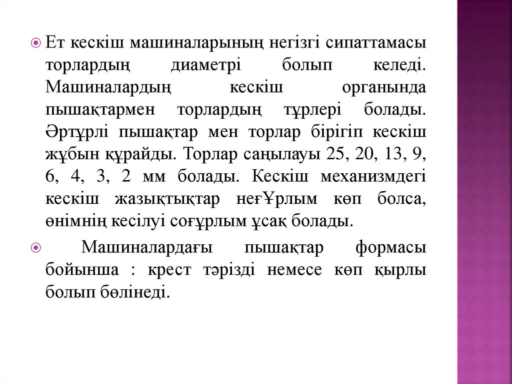 Етжәне ет өнiмдерiн жұқа ұсақтауға арналған