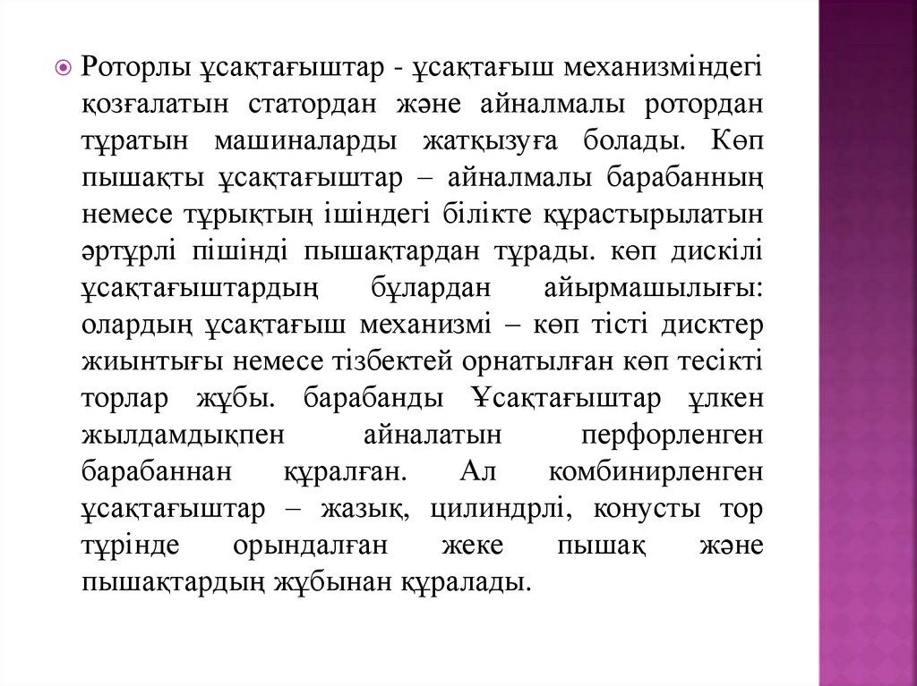Роторлы ұсақтағыштар - ұсақтағыш механизмiндегiқозғалатын статордан және айналмалы ротордан