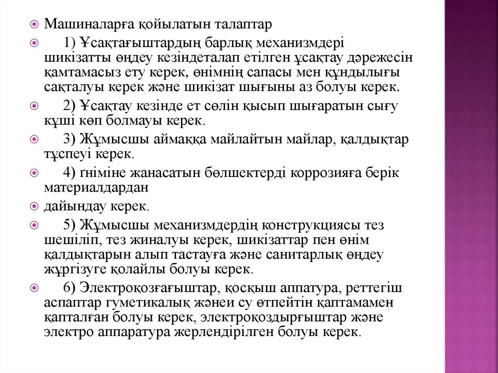 Машиналарға қойылатын талаптар1) Ұсақтағыштардың барлық механизмдерi