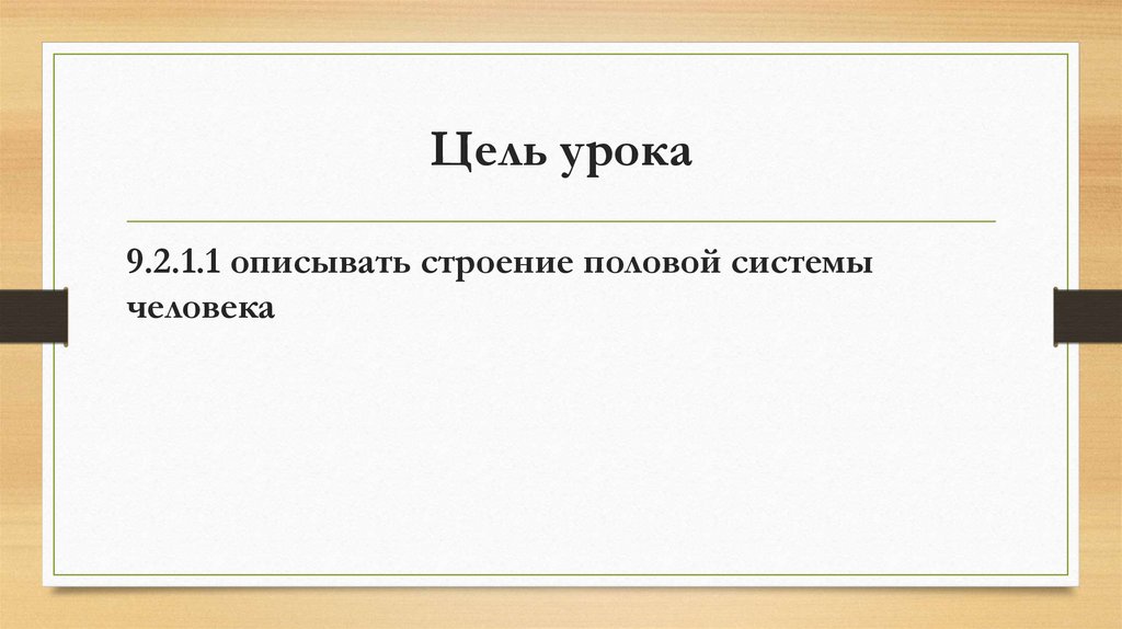 Цель урока9.2.1.1 описывать строение половой системы