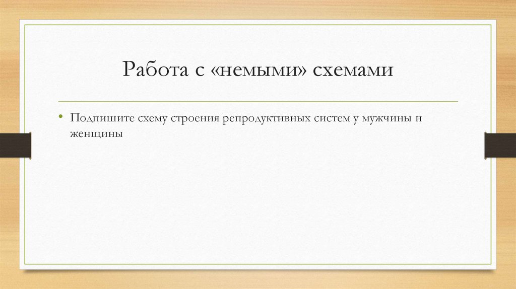 Работа с «немыми» схемами• Подпишите схему строения репродуктивных систем у мужчины и
