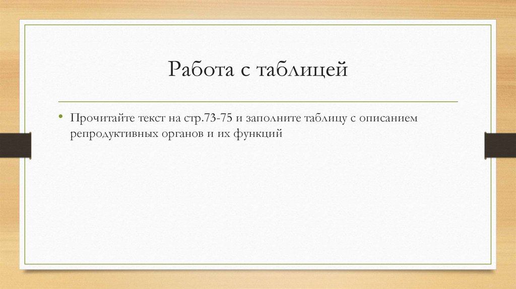 Работа с таблицей• Прочитайте текст на стр.73-75 и заполните таблицу с описанием