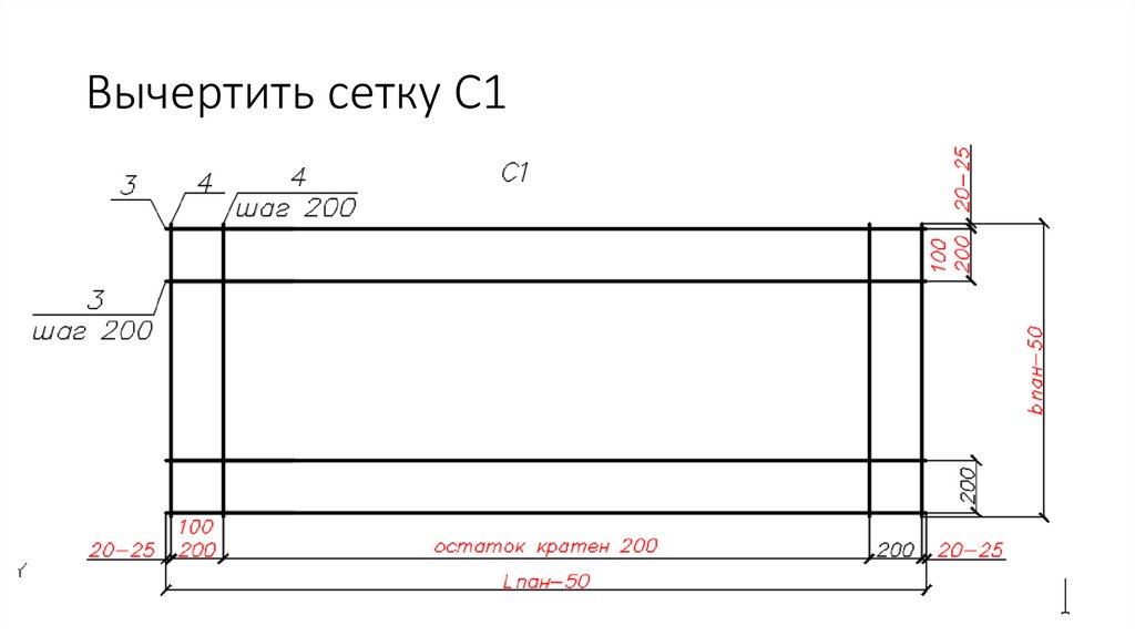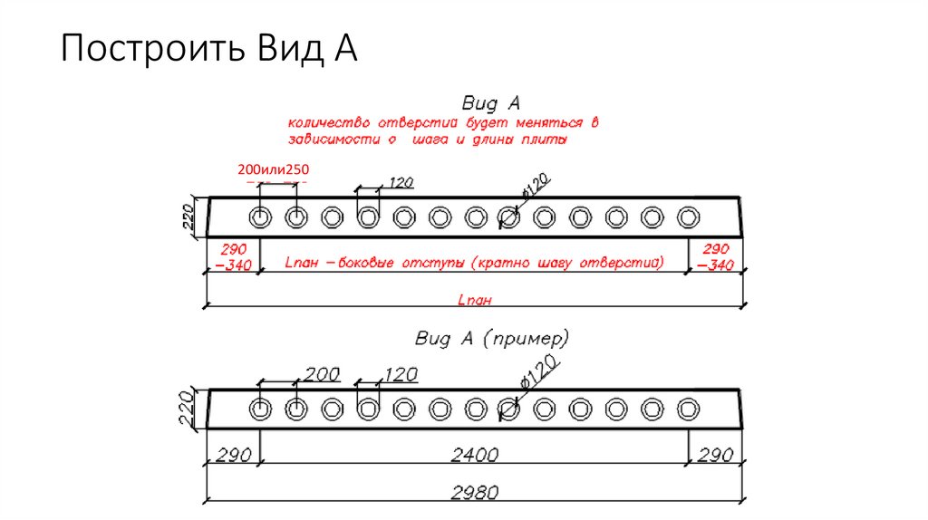Вычертить вид плиты сверху, показатьнаправление вида А, Б, положение секущей