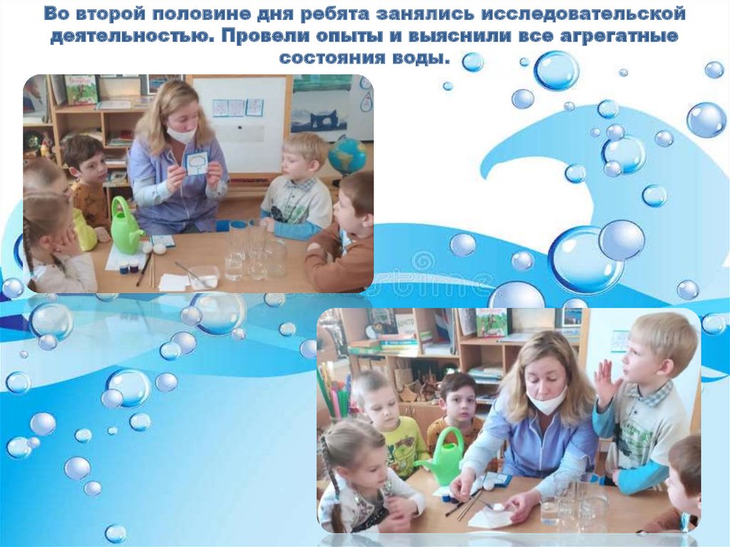 Во второй половине дня ребята занялись исследовательскойдеятельностью. Провели опыты и выяснили все агрегатные