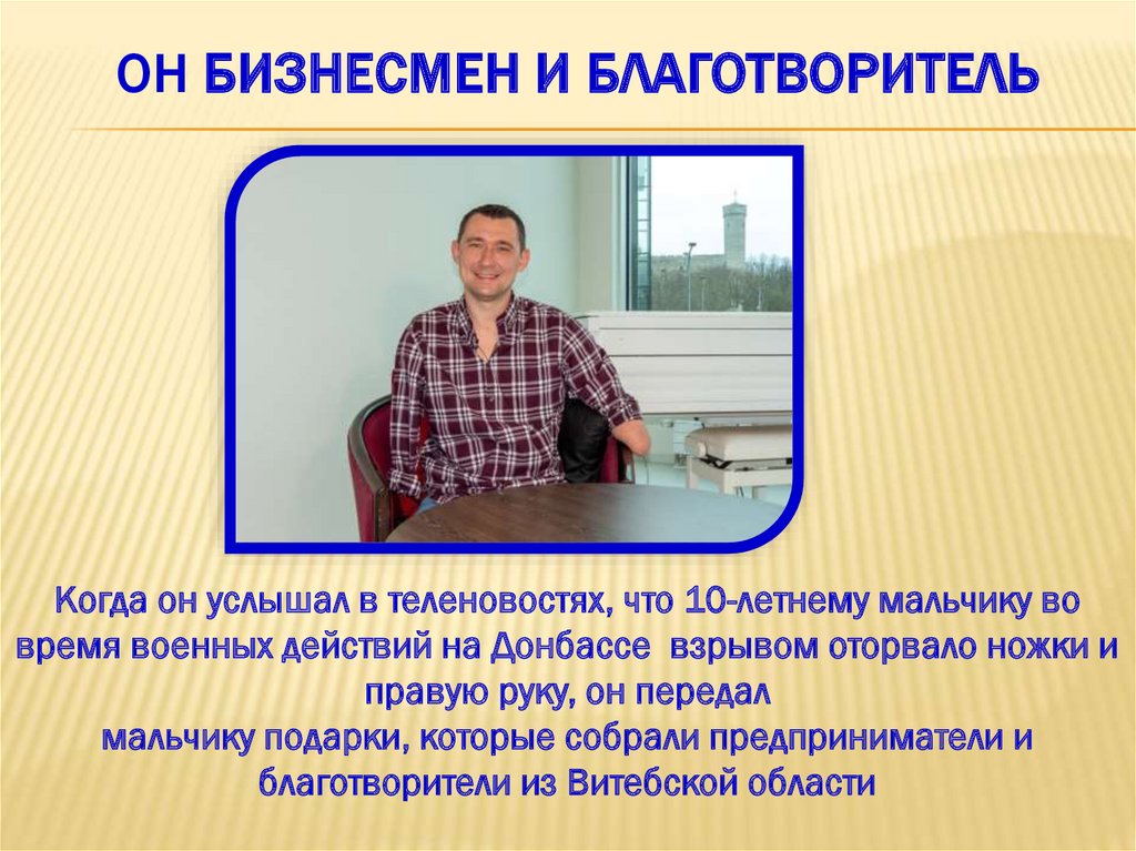 ОН БИЗНЕСМЕН И БЛАГОТВОРИТЕЛЬКогда он услышал в теленовостях, что 10-летнему мальчику во