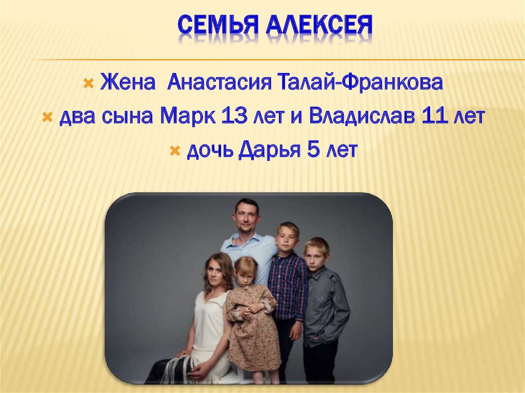 СЕМЬЯ АЛЕКСЕЯЖена Анастасия Талай-Франкова