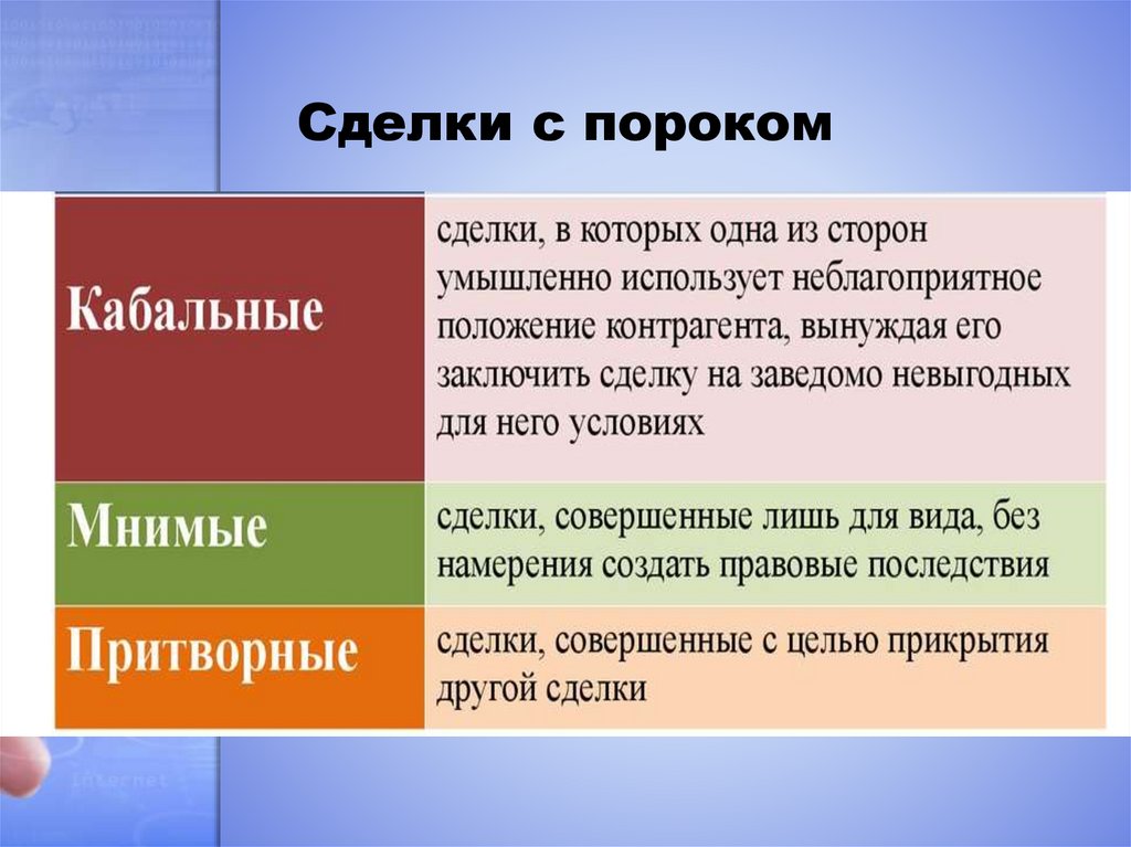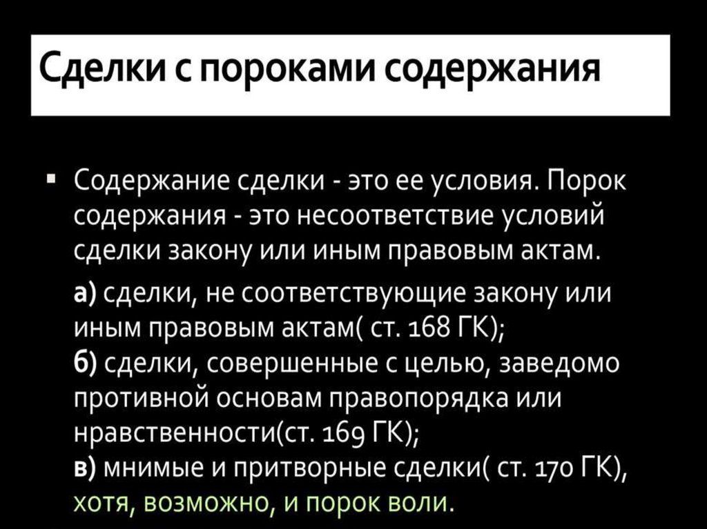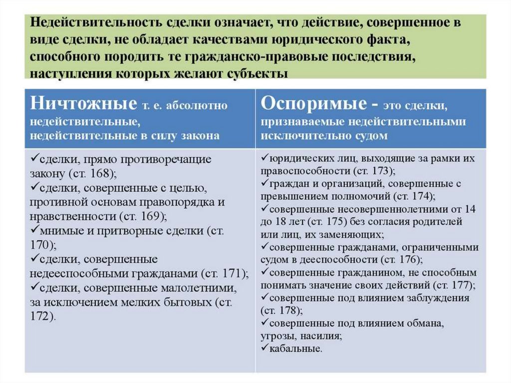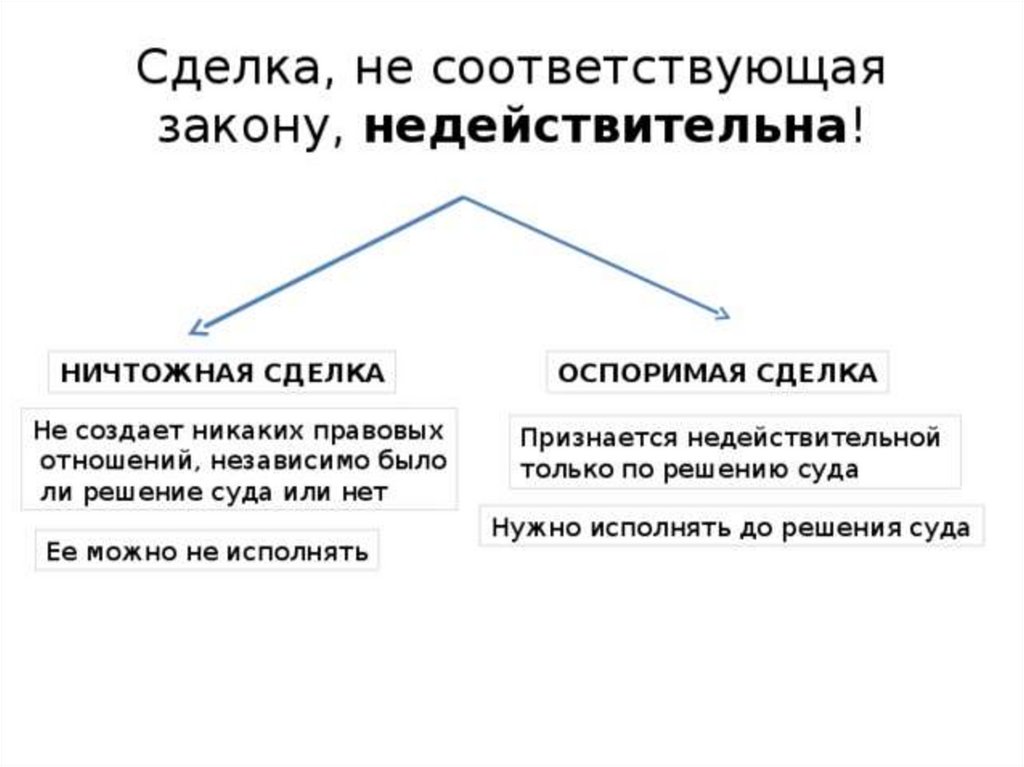 ОБЩЕЕ ПРАВИЛО: сделка, не соответствующая закону,недействительна.