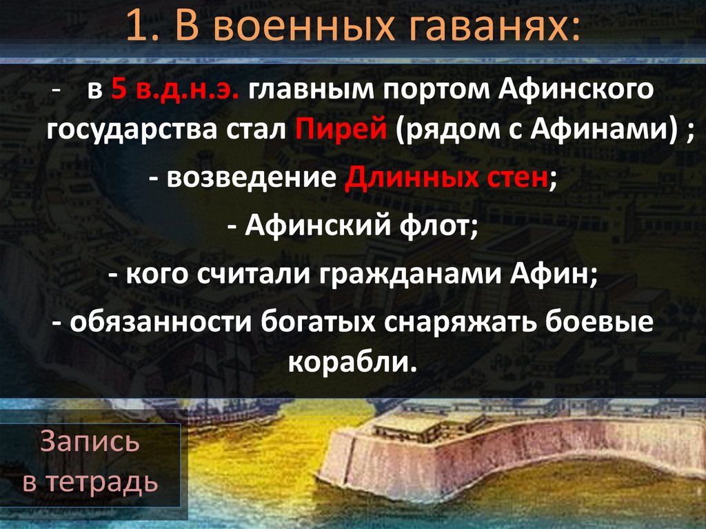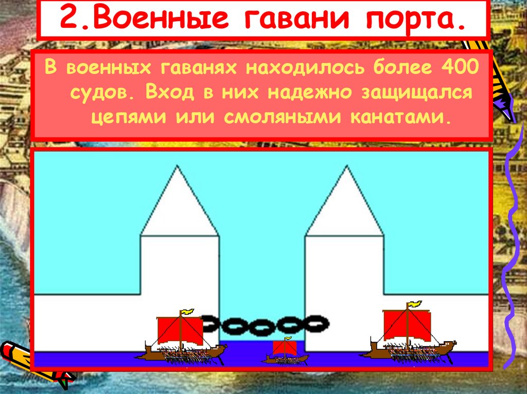 1. В военных гаванях:- в 5 в.д.н.э. главным портом Афинского