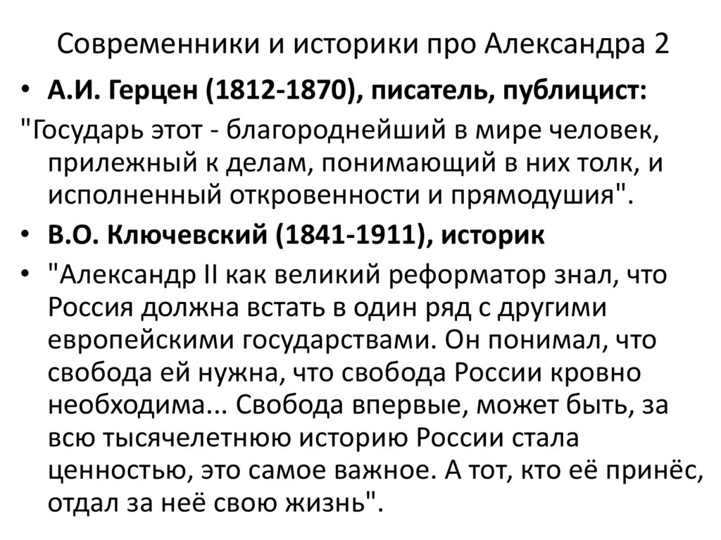 Современники и историки про Александра 2• А.И. Герцен (1812-1870), писатель, публицист: