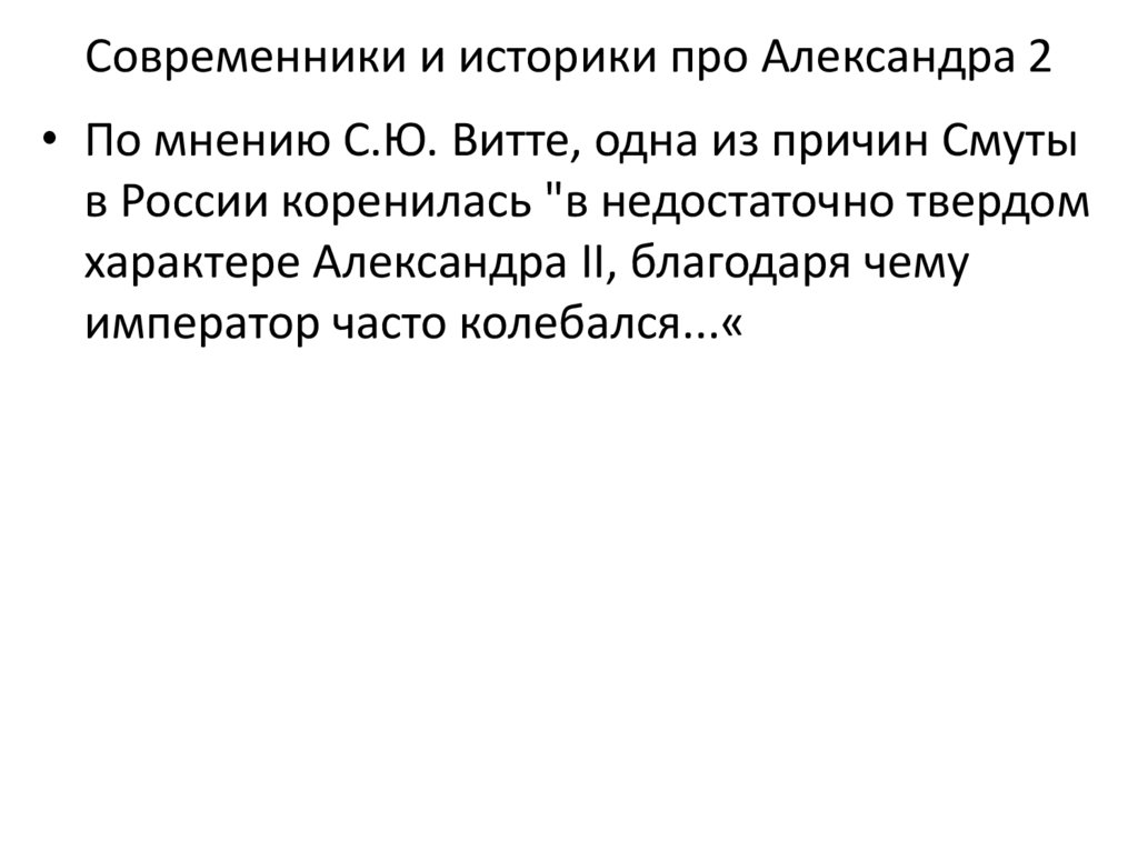 Современники и историки про Александра 2• По мнению С.Ю. Витте, одна из причин Смуты