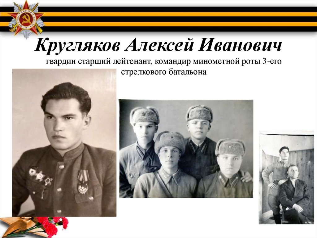 Кругляков Алексей Ивановичгвардии старший лейтенант, командир минометной роты 3-его