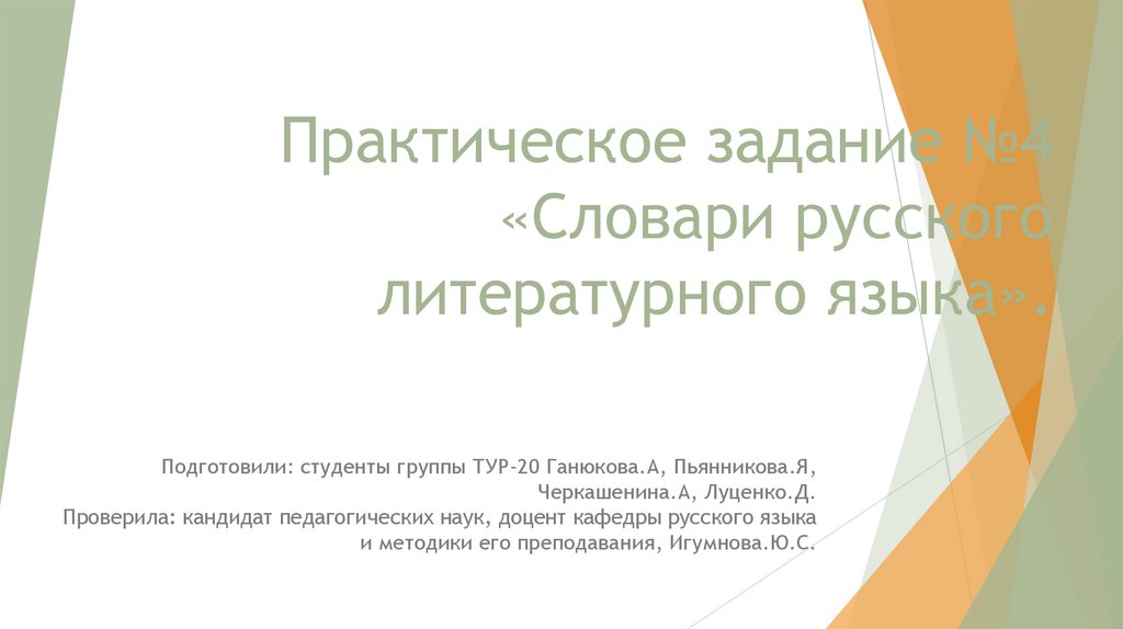 Проверила: кандидат педагогических наук, доцент кафедры русского языка
