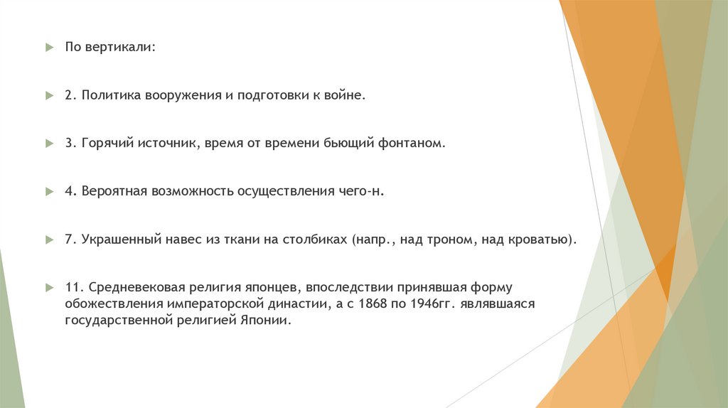 По вертикали:2. Политика вооружения и подготовки к войне.