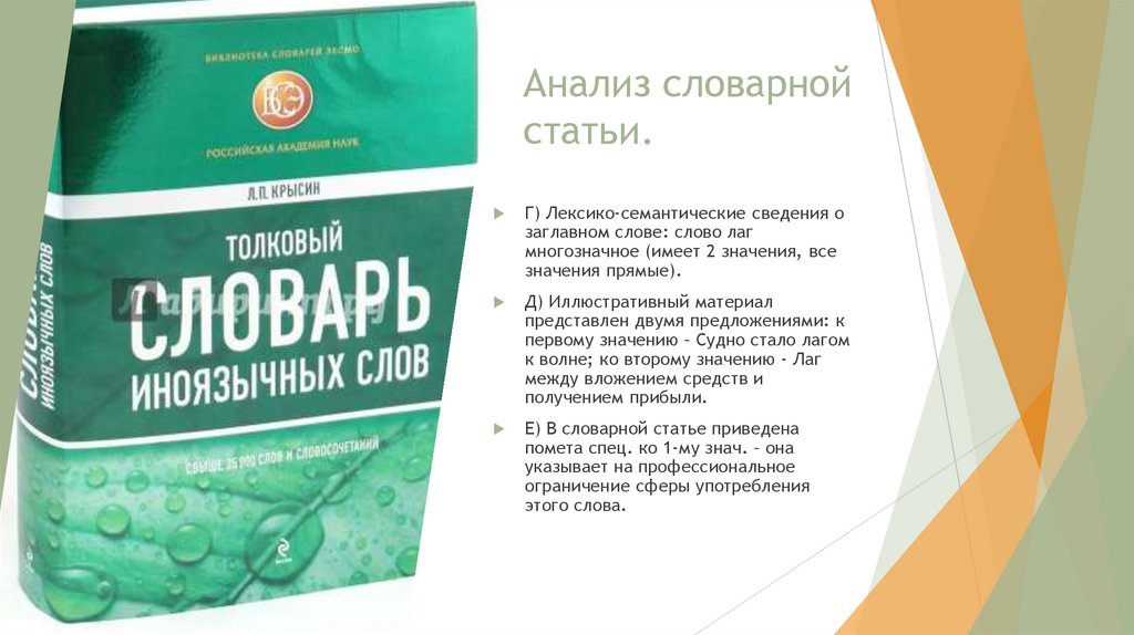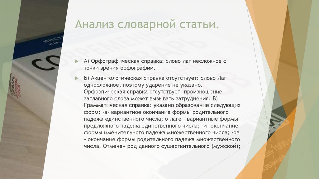 Анализ словарной статьи.А) Орфографическая справка: слово лаг несложное с