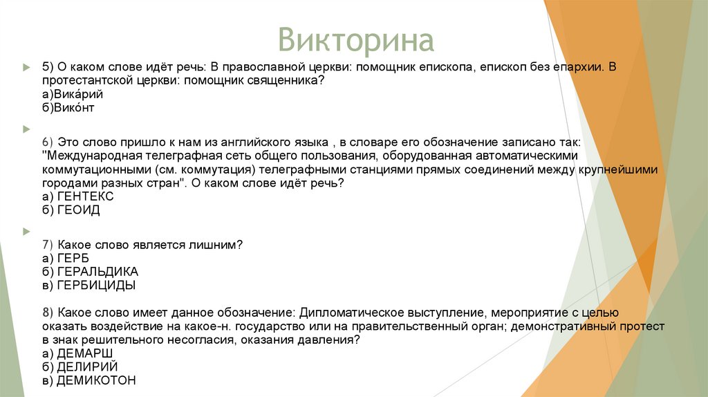 Викторина5) О каком слове идёт речь: В православной церкви: помощник епископа, епископ без епархии. В