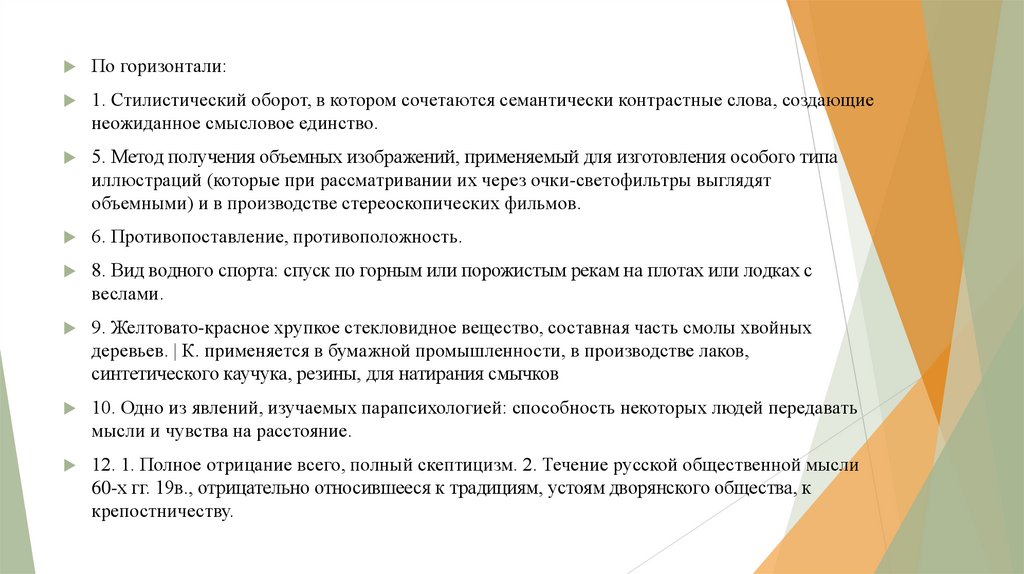 По горизонтали:1. Стилистический оборот, в котором сочетаются семантически контрастные слова, создающие