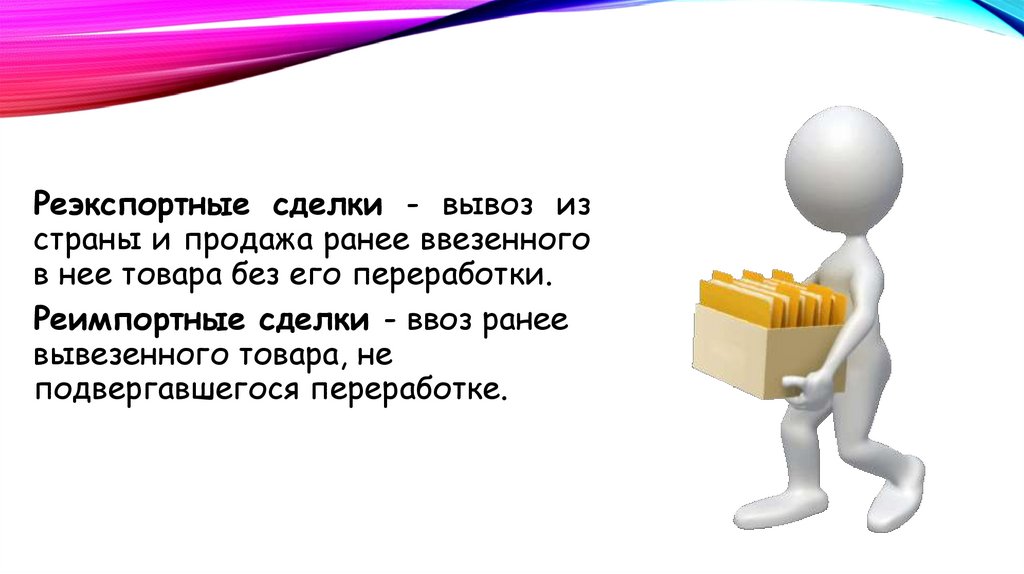 Реэкспортные сделки - вывоз изстраны и продажа ранее ввезенного