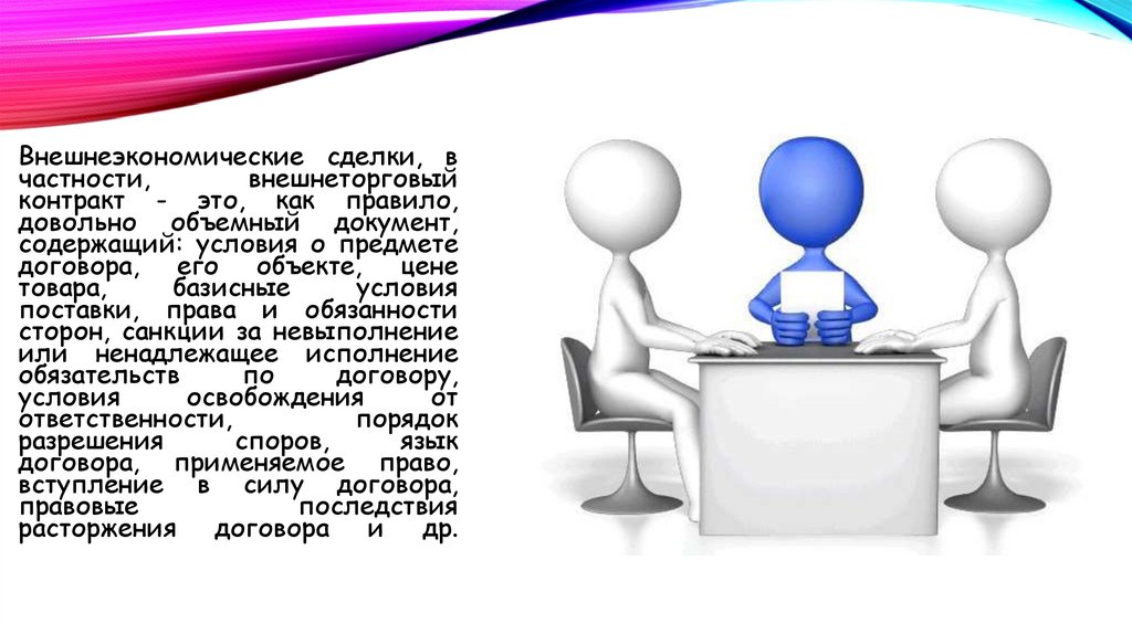 Внешнеторговая сделка – сделка, одним из участников которой являетсяиностранное физическое или юридическое лицо, а содержанием – операции,
