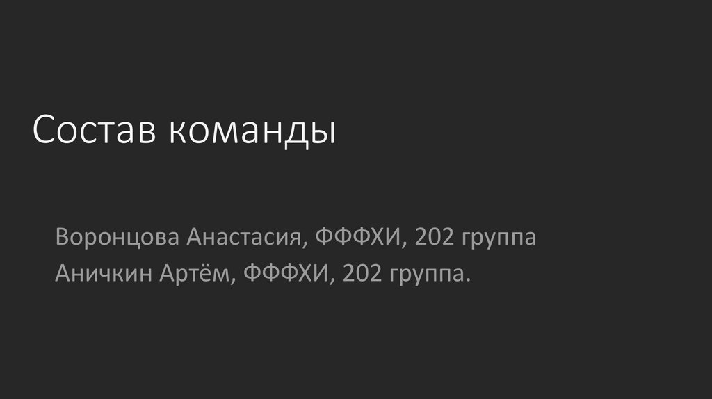 Состав командыВоронцова Анастасия, ФФФХИ, 202 группа
