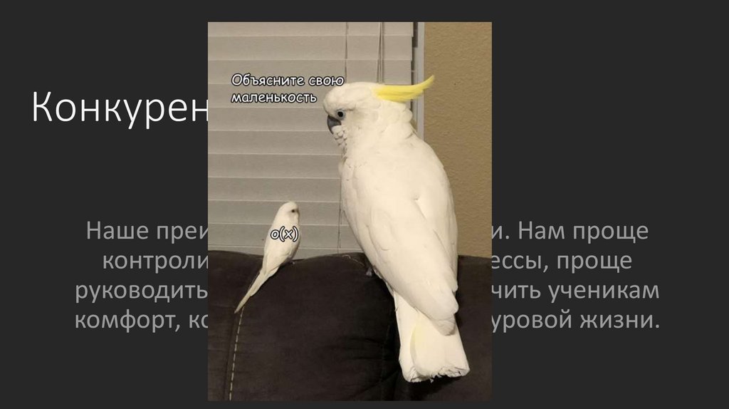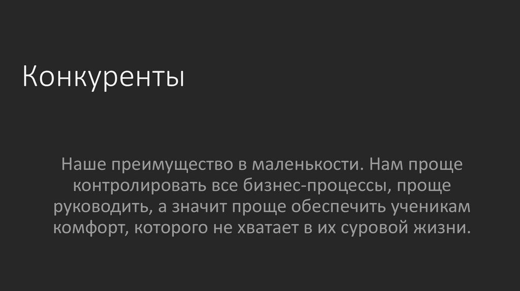 КонкурентыНаше преимущество в маленькости. Нам проще
