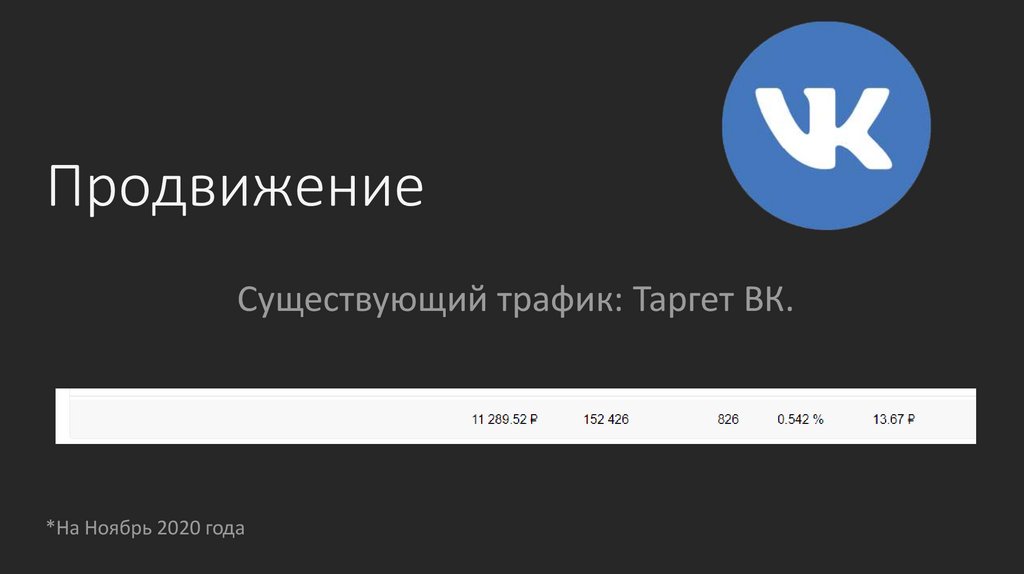 ПродвижениеСуществующий трафик: Таргет ВК.