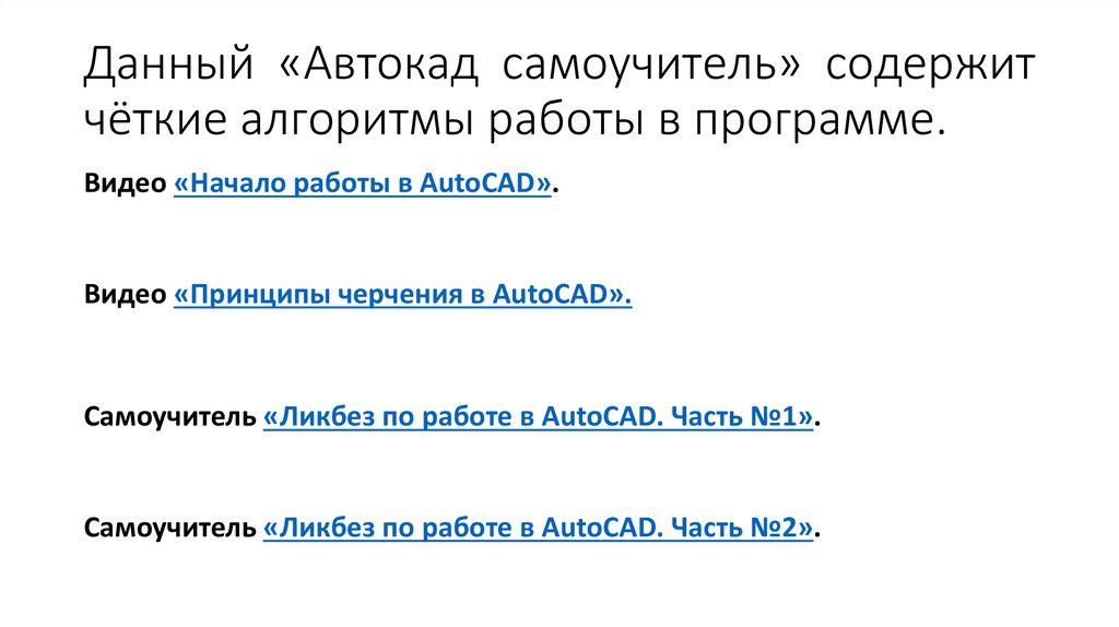 Данный «Автокад самоучитель» содержитчёткие алгоритмы работы в программе.
