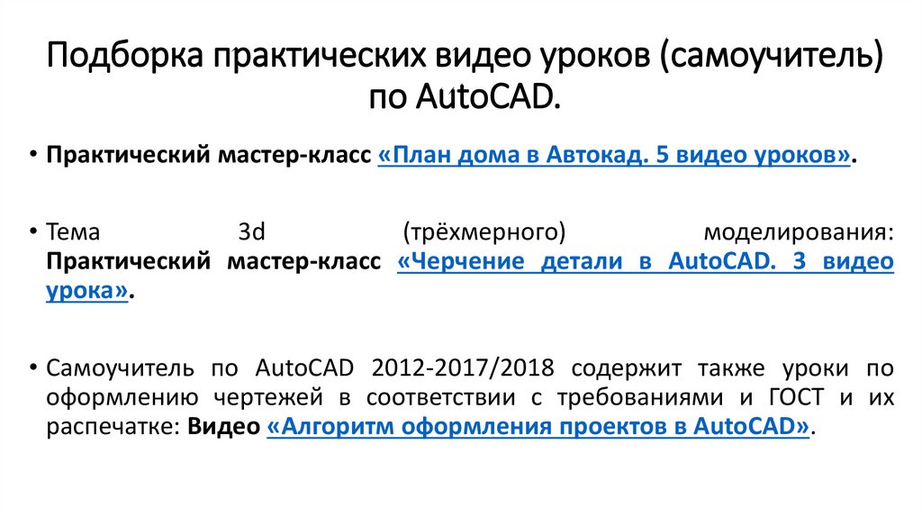 Подборка практических видео уроков (самоучитель)по AutoCAD.