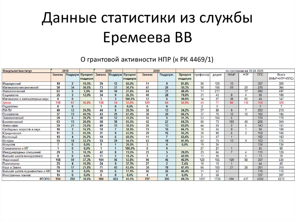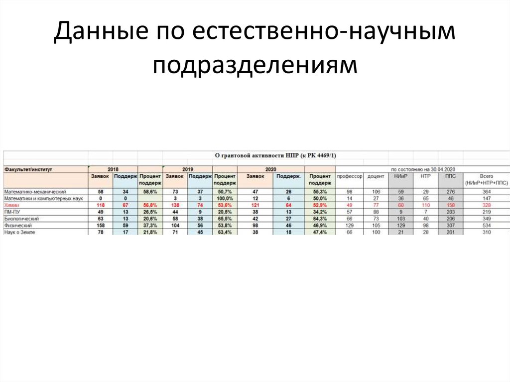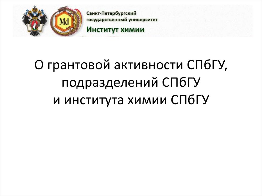 О грантовой активности СПбГУ, подразделений СПбГУ и института химии СПбГУ