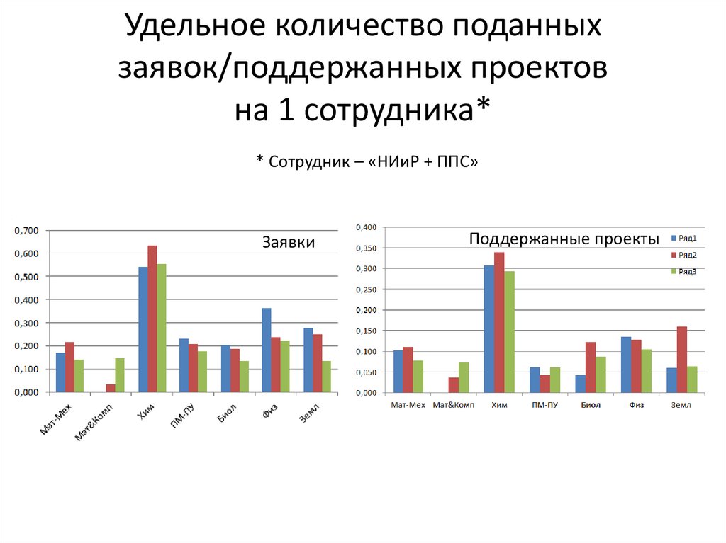 в категории «поддержанные проекты» в расчете на 1 сотрудника.
