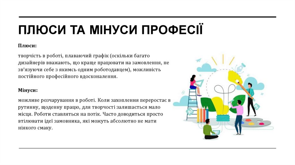 ПЛЮСИ ТА МІНУСИ ПРОФЕСІЇПлюси: