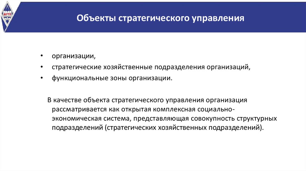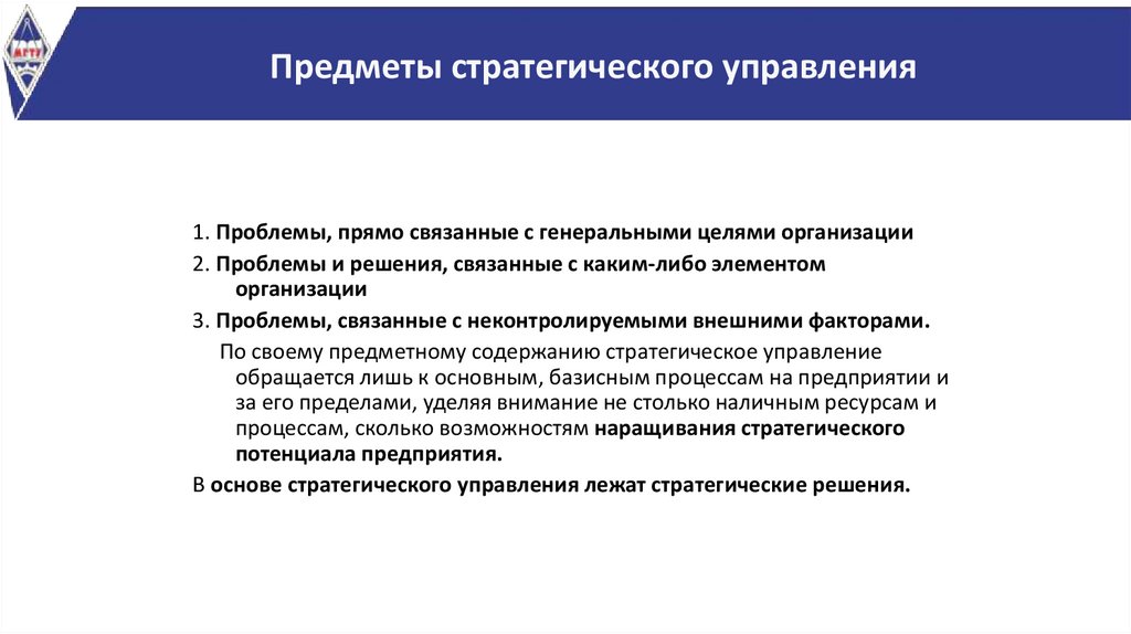 Предметы стратегического управления1. Проблемы, прямо связанные с генеральными целями организации
