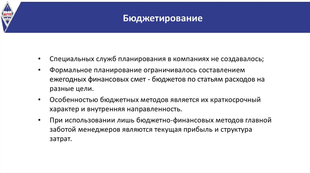БюджетированиеСпециальных служб планирования в компаниях не создавалось;
