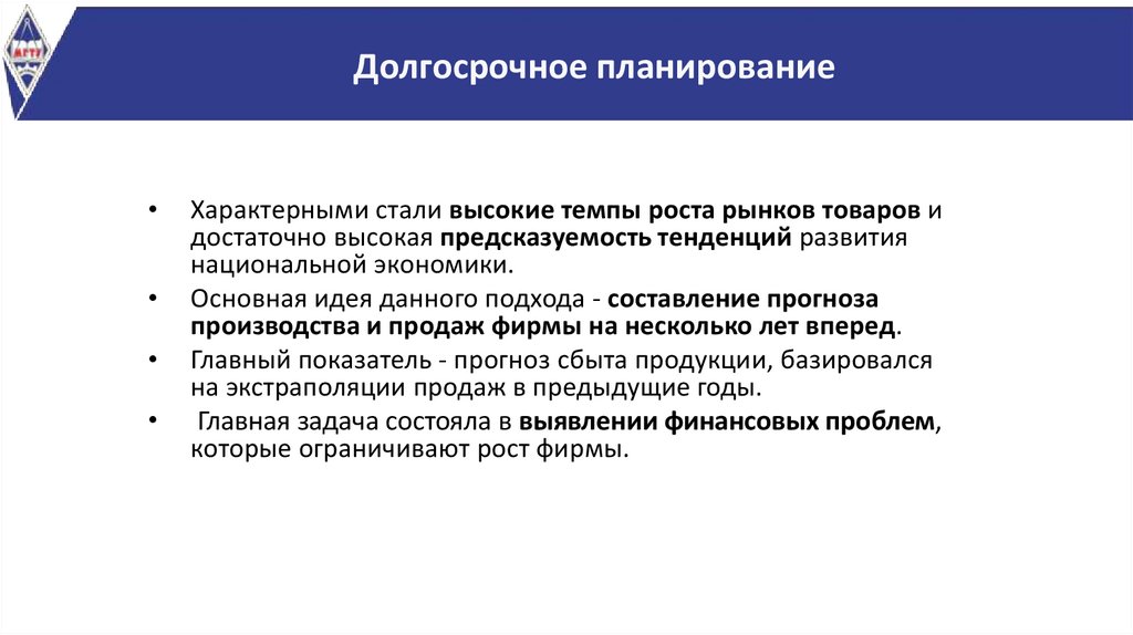 Долгосрочное планированиеХарактерными стали высокие темпы роста рынков товаров и