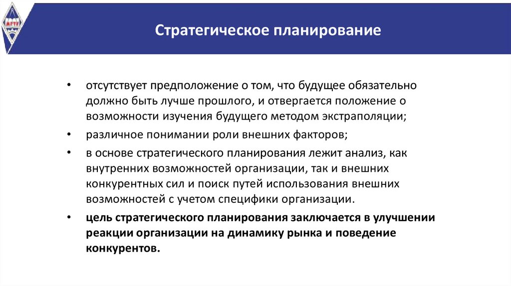 Стратегическое планированиеотсутствует предположение о том, что будущее обязательно