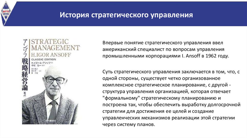 История стратегического управленияВпервые понятие стратегического управления ввел