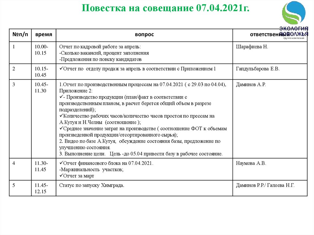 1.Отчет по производственным процессам на 07.04.2021 ( с 29.03 по 04.04),