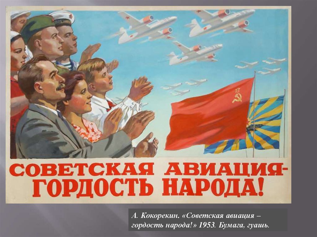 А. Кокорекин. «Советская авиация –гордость народа!» 1953. Бумага, гуашь.