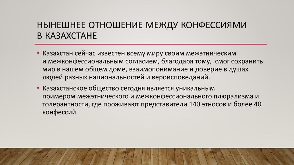 НЫНЕШНЕЕ ОТНОШЕНИЕ МЕЖДУ КОНФЕССИЯМИВ КАЗАХСТАНЕ