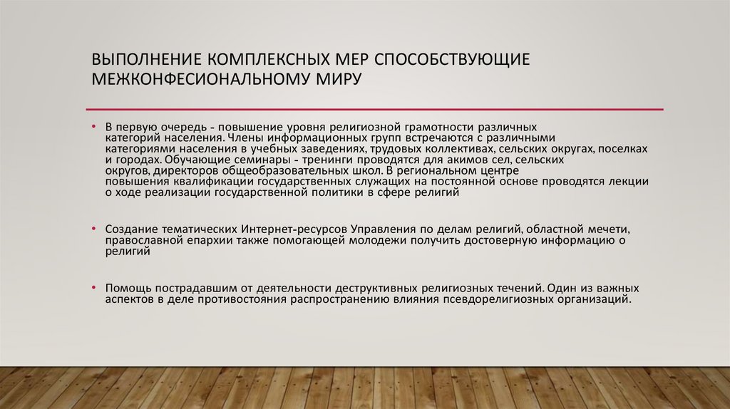 ВЫПОЛНЕНИЕ КОМПЛЕКСНЫХ МЕР СПОСОБСТВУЮЩИЕМЕЖКОНФЕСИОНАЛЬНОМУ МИРУ