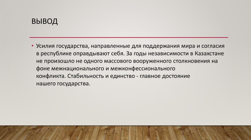 ВЫВОД• Усилия государства, направленные для поддержания мира и согласия