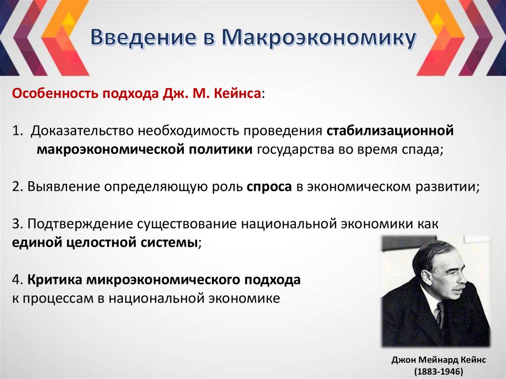 Особенность подхода Дж. М. Кейнса:1. Доказательство необходимость проведения стабилизационной
